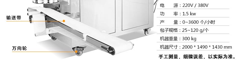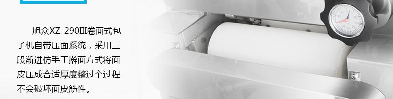 名稱XZ-290II卷面式包子機 電源220/380V(見機器名牌) 功率1.8kw 產(chǎn)量0-3600個/小時 尺寸2680*1500*1420mm(包括輸送帶) 重量420kg 規(guī)格25-130克/個 其他