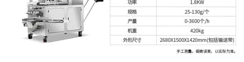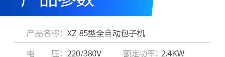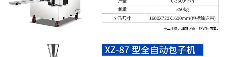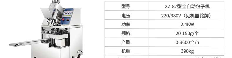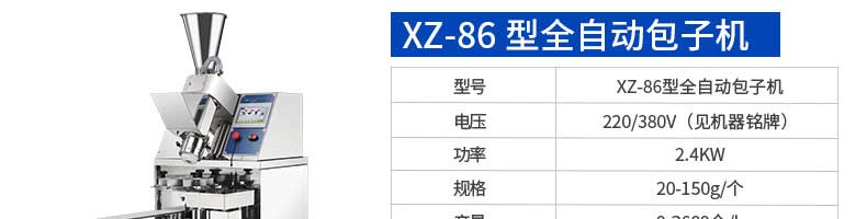 名稱XZ-85全自動包子機 電源220/380v 功率2.4kw 產量 尺寸1600*720*1600mm 重量350kg 規(guī)格20-150克/只 其他