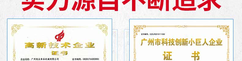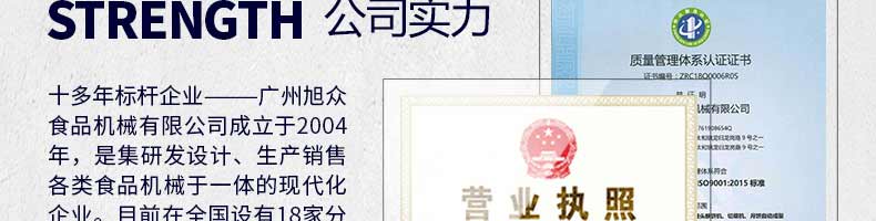 廣州旭眾食品機械有限公司是一家集科研開發(fā),生產設計,營銷服務為一體的現(xiàn)代化生產企業(yè)。現(xiàn)代化生產車間,精湛制造技術,所產機械歷經市場重重考驗,不斷贏得海內外客戶的贊譽。