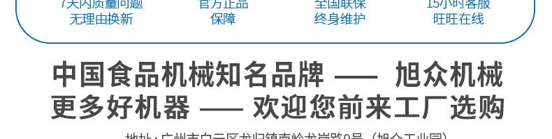 廣州旭眾食品機(jī)械有限公司是一家集科研開發(fā),生產(chǎn)設(shè)計,營銷服務(wù)為一體的現(xiàn)代化生產(chǎn)企業(yè)?,F(xiàn)代化生產(chǎn)車間,精湛制造技術(shù),所產(chǎn)機(jī)械歷經(jīng)市場重重考驗,不斷贏得海內(nèi)外客戶的贊譽。