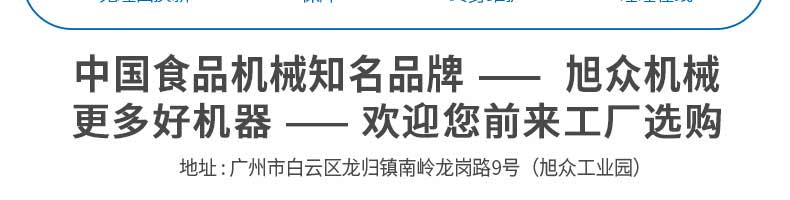 廣州旭眾食品機械有限公司是一家集科研開發(fā),生產(chǎn)設(shè)計,營銷服務(wù)為一體的現(xiàn)代化生產(chǎn)企業(yè)?,F(xiàn)代化生產(chǎn)車間,精湛制造技術(shù),所產(chǎn)機械歷經(jīng)市場重重考驗,不斷贏得海內(nèi)外客戶的贊譽。