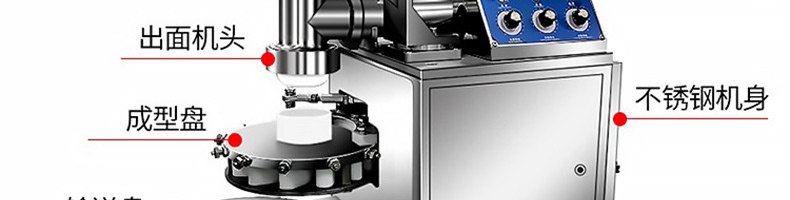 名稱XZ-510包子機(jī) 電源220V 功率電機(jī)功率:0.8KW 產(chǎn)量0-1000個(gè)/h 尺寸400X700x910mm 重量83KG 規(guī)格25-100克/個(gè) 其他高度:0.9米