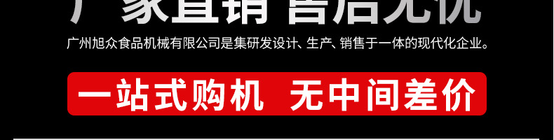 廣州旭眾食品機(jī)械有限公司是一家集科研開(kāi)發(fā),生產(chǎn)設(shè)計(jì),營(yíng)銷服務(wù)為一體的現(xiàn)代化生產(chǎn)企業(yè)?,F(xiàn)代化生產(chǎn)車間,精湛制造技術(shù),所產(chǎn)機(jī)械歷經(jīng)市場(chǎng)重重考驗(yàn),不斷贏得海內(nèi)外客戶的贊譽(yù)。