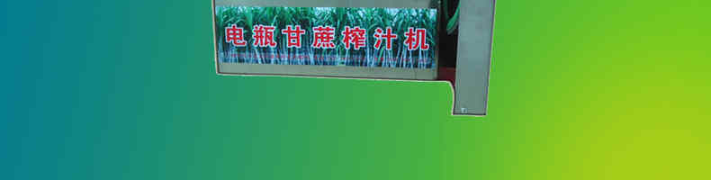 電瓶式甘庶汁機(jī),采用全不銹鋼外殼,外形美觀,榨汁滾輪,機(jī)頭部件都經(jīng)過(guò)嚴(yán)格的防銹仿腐蝕處理,保證蔗汁符合衛(wèi)生標(biāo)準(zhǔn),適合賓館、卡拉OK廳、水果店、冷飲店、涼茶店、車(chē)站、超市等服務(wù)行業(yè)壓榨各種甘蔗之用。