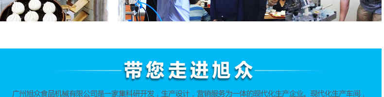 廣州旭眾食品機械有限公司是一家集科研開發(fā),生產(chǎn)設計,營銷服務為一體的現(xiàn)代化生產(chǎn)企業(yè)。現(xiàn)代化生產(chǎn)車間,精湛制造技術,所產(chǎn)機械歷經(jīng)市場重重考驗,不斷贏得海內(nèi)外客戶的贊譽。