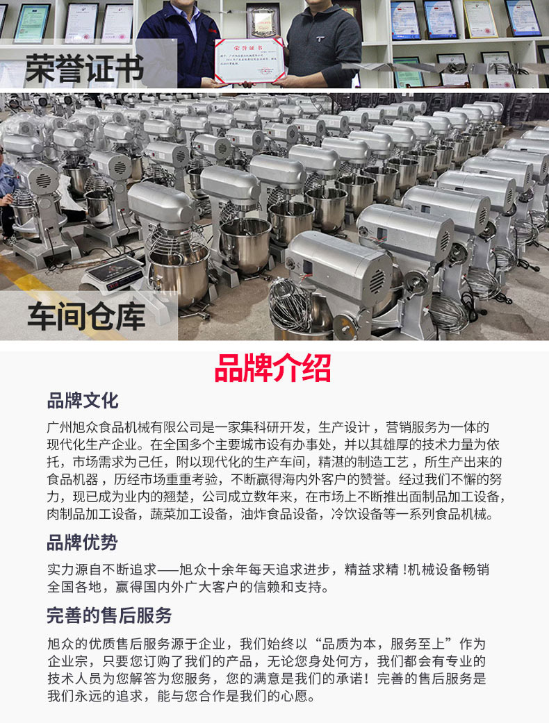 廣州旭眾食品機(jī)械有限公司是一家集科研開發(fā),生產(chǎn)設(shè)計,營銷服務(wù)為一體的現(xiàn)代化生產(chǎn)企業(yè)?,F(xiàn)代化生產(chǎn)車間,精湛制造技術(shù),所產(chǎn)機(jī)械歷經(jīng)市場重重考驗(yàn),不斷贏得海內(nèi)外客戶的贊譽(yù)。