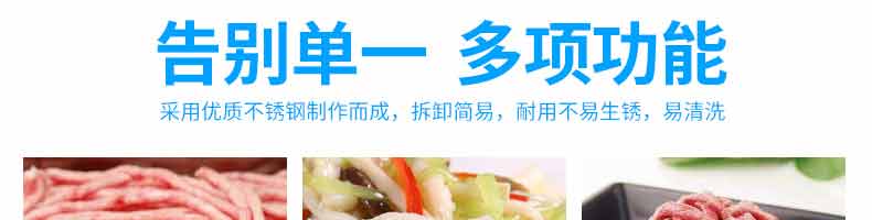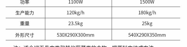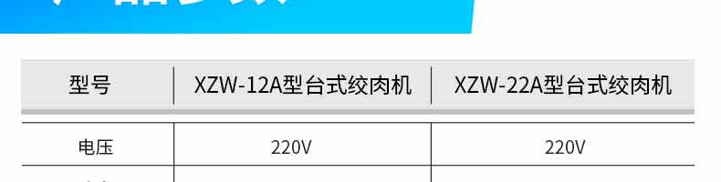 名稱XZW-22A絞肉機(jī) 電源220V 功率1100W,1500W 產(chǎn)量120kg/h,180kg/h 尺寸530*290*300mm,540*290*350mm 重量23.5kg,25kg 規(guī)格 其他