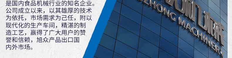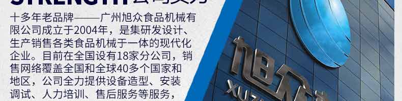 廣州旭眾食品機械有限公司是一家集科研開發(fā),生產設計,營銷服務為一體的現(xiàn)代化生產企業(yè)?,F(xiàn)代化生產車間,精湛制造技術,所產機械歷經市場重重考驗,不斷贏得海內外客戶的贊譽。