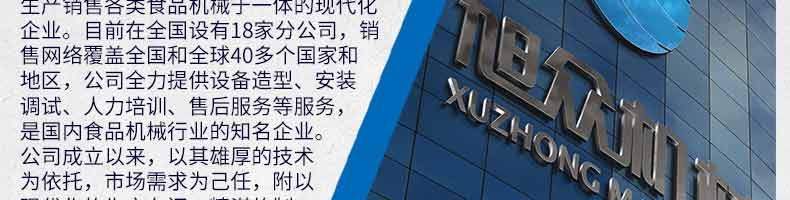 廣州旭眾食品機械有限公司是一家集科研開發(fā),生產(chǎn)設(shè)計,營銷服務為一體的現(xiàn)代化生產(chǎn)企業(yè)。現(xiàn)代化生產(chǎn)車間,精湛制造技術(shù),所產(chǎn)機械歷經(jīng)市場重重考驗,不斷贏得海內(nèi)外客戶的贊譽。