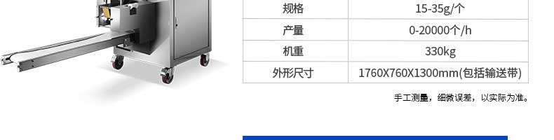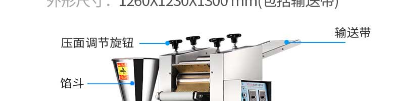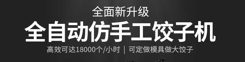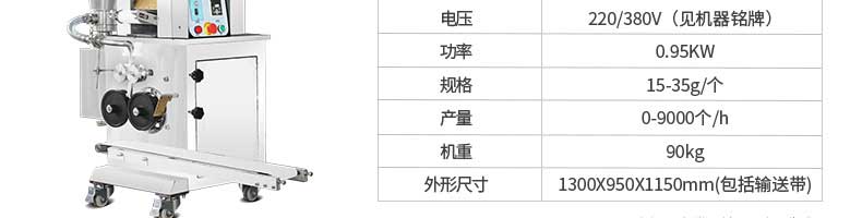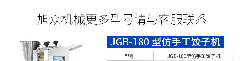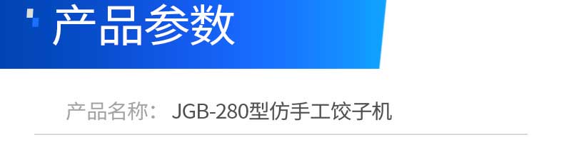 名稱JGB-280仿手工餃子機(jī) 電源220/380V 功率1.75kw 產(chǎn)量0-18000個(gè)/小時(shí) 尺寸1260*1230*1300mm 重量270KG 規(guī)格 其他