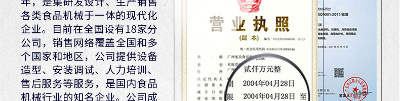 廣州旭眾食品機(jī)械有限公司是一家集科研開發(fā),生產(chǎn)設(shè)計(jì),營銷服務(wù)為一體的現(xiàn)代化生產(chǎn)企業(yè)?,F(xiàn)代化生產(chǎn)車間,精湛制造技術(shù),所產(chǎn)機(jī)械歷經(jīng)市場重重考驗(yàn),不斷贏得海內(nèi)外客戶的贊譽(yù)。