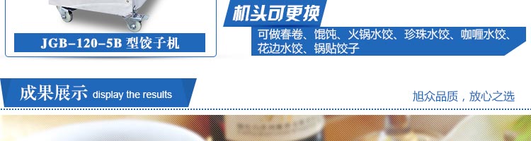 JGB-120-5B型餃子機,本機是一款可生產(chǎn)各種肉餡、肉菜混合餡、全菜餡及其他種餡餃子的設(shè)備。一機多用途,只要更換模具,就可制作不同的食品,如春卷、餛飩、咖喱角、鍋貼等。適用于賓館、飯店、餐廳、團(tuán)體食堂加工,幼兒園、速凍餃子生產(chǎn)。
