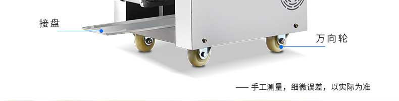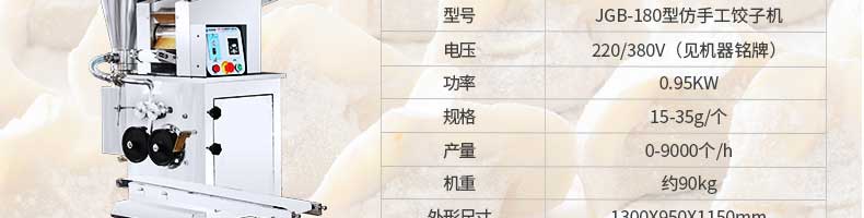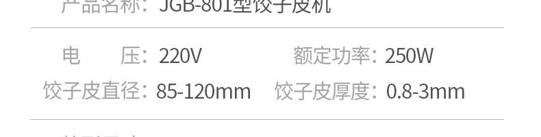 名稱801II餃子皮機(jī) 電源220V 功率250W 產(chǎn)量各款有不同,聯(lián)系銷售員 尺寸650X380X750mm 重量各款有不同,聯(lián)系銷售員 規(guī)格餃子皮直徑:85-120mm餃子皮厚度:0.8-3mm 其他