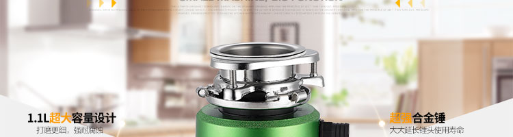 名稱(chēng)DCLQ38-廚房垃圾處理器 電源220V 功率0.38kw 產(chǎn)量 尺寸 重量5kg 規(guī)格 其他轉(zhuǎn)速3000R/min,研磨倉(cāng)容量1150ML
