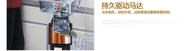 DCLQ38-廚房垃圾處理器,該機(jī)擁有獨(dú)特的粉碎功能,使所有垃圾研磨吸毒真正低于3毫米,用戶(hù)不用為管道堵塞而煩惱,粉碎后粗、細(xì)兩種垃圾通過(guò)濾孔自動(dòng)分離,成漿狀的細(xì)垃圾隨水流流入管道,粗的垃圾會(huì)稍停留在研磨倉(cāng)繼續(xù)粉碎,形成粉末狀后,再隨水流流入管道,客戶(hù)可以放心使用。
