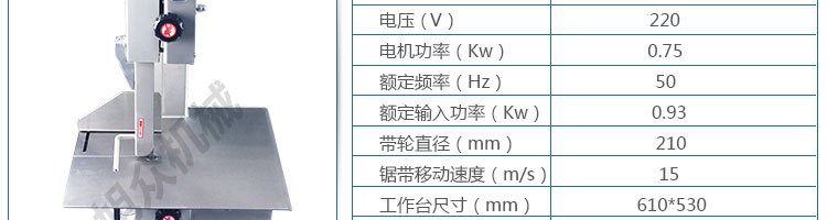 名稱JG-210臺(tái)式鋸骨機(jī) 電源220V 功率0.75kw 產(chǎn)量 尺寸535*520*985mm 重量43kg 規(guī)格 其他