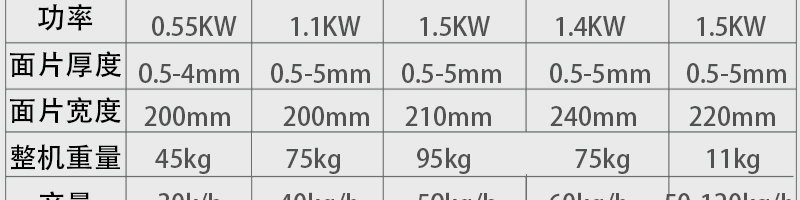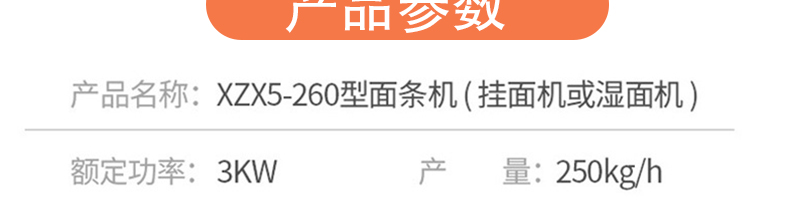 名稱MT260-5多功能面條機 電源 功率3kw 產量200kg/h 尺寸1800*620*1400mm 重量560kg 規(guī)格 其他