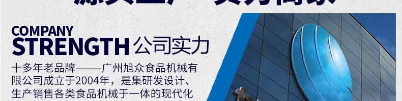 廣州旭眾食品機(jī)械有限公司是一家集科研開發(fā),生產(chǎn)設(shè)計(jì),營銷服務(wù)為一體的現(xiàn)代化生產(chǎn)企業(yè)。現(xiàn)代化生產(chǎn)車間,精湛制造技術(shù),所產(chǎn)機(jī)械歷經(jīng)市場(chǎng)重重考驗(yàn),不斷贏得海內(nèi)外客戶的贊譽(yù)。