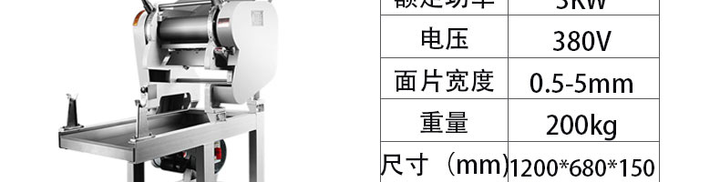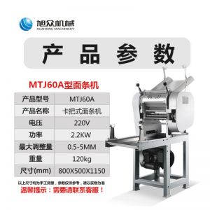 名稱60型全自動壓面面條機(jī) 電源220v 功率2.2kw 產(chǎn)量60kg/h 尺寸800*500*1150mm 重量120kg 規(guī)格 其他