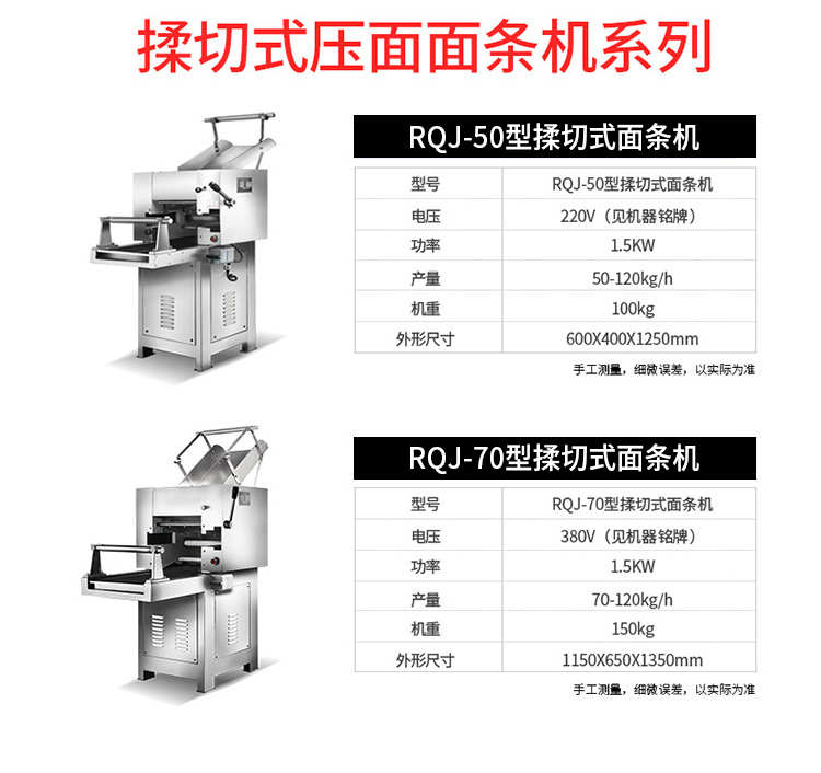 名稱MTJ-50型卡把式面條機 電源各款型號有所不同,請聯(lián)系聯(lián)系員 功率各款型號有所不同,請聯(lián)系聯(lián)系員 產量 尺寸各款型號有所不同,請聯(lián)系聯(lián)系員 重量各款型號有所不同,請聯(lián)系聯(lián)系員 規(guī)格 其他