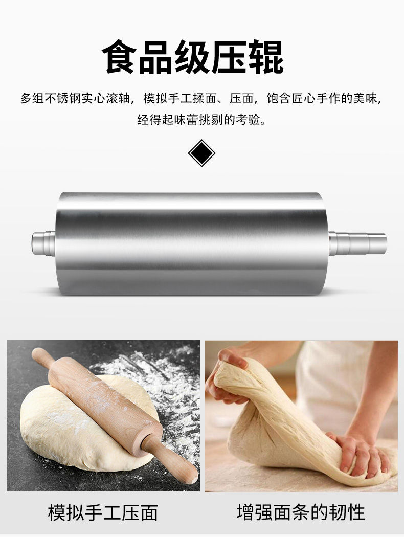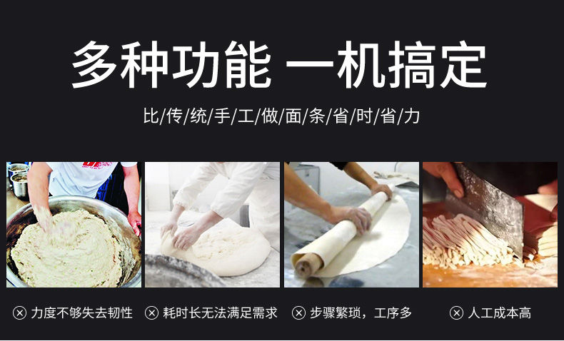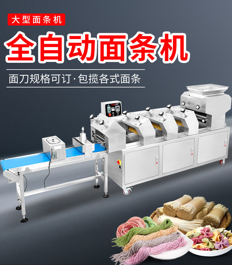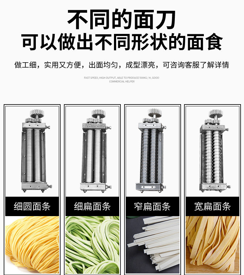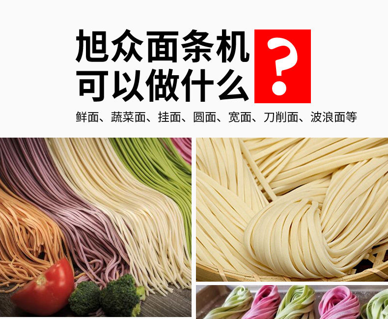 JG-7MT300面條機(jī),多種功能一機(jī)搞定比傳統(tǒng)手工做面條,省時(shí)省力??梢宰鍪裁歹r面、蔬菜面、掛面、圓面、寬面、刀削面、波浪面等。不同的面刀可以做出不同形狀的面食做工細(xì),實(shí)用又方便,出面均勻,成型漂亮。