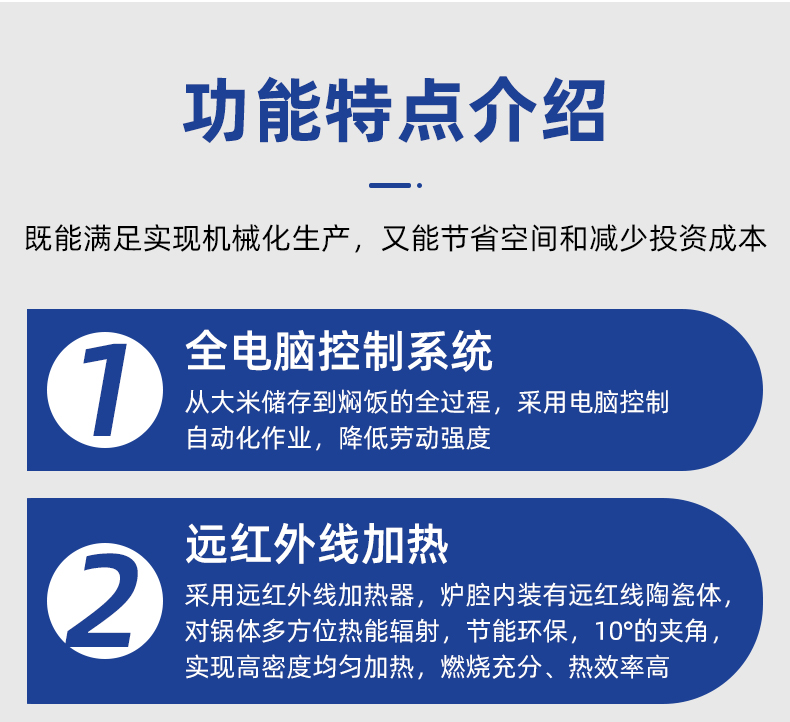 機械手全自動米飯生產(chǎn)線,實力大咖 商用好幫手,提供培訓(xùn)、指導(dǎo)和工藝傳授,品牌服務(wù)有保障。遠紅外加熱、智能控制、立體燜飯、不粘鍋、熱效率高、不銹鋼結(jié)構(gòu)、雙層保溫、節(jié)能環(huán)保。