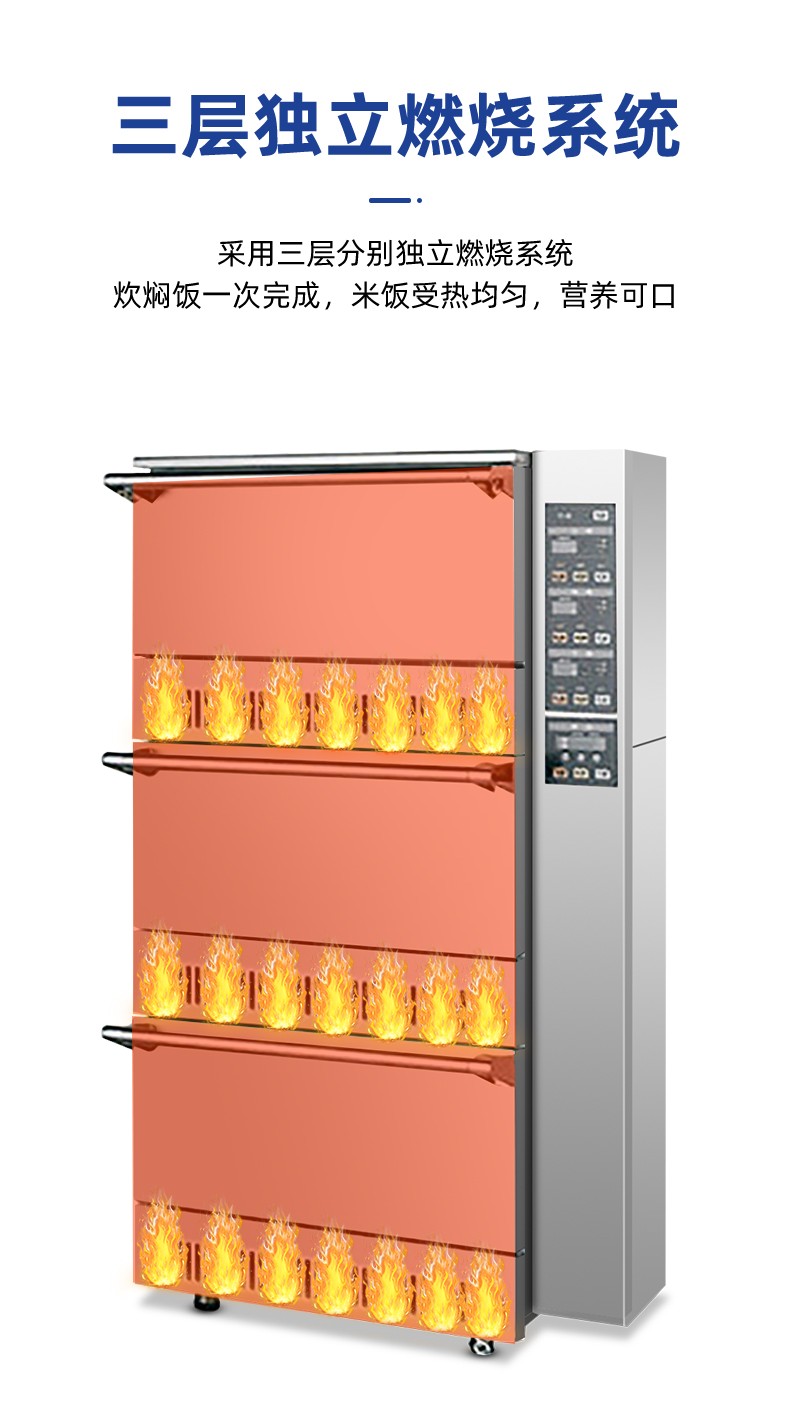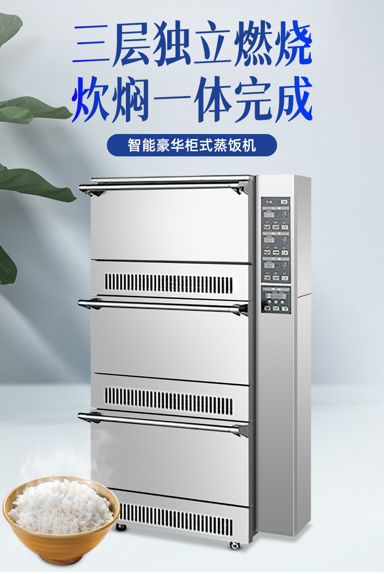 立式米飯機(jī),主要結(jié)構(gòu):主要由全不銹鋼柜體、上下三層結(jié)構(gòu)加原鋁鎂合金模鑄鍋體、微電腦自動(dòng)控制系統(tǒng)燃燒系統(tǒng)、熄火保護(hù)系統(tǒng)等組成。適用對(duì)象:主要用于生產(chǎn)加工高品質(zhì)米飯的壽司店、高端酒店西餐廚房、茶餐廳以及高端的快餐門(mén)店等