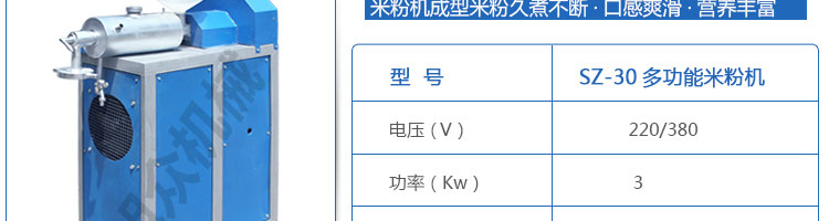 名稱SZ-30米粉機 電源220/380V 功率3kw 產(chǎn)量30kg/h 尺寸950*400*1270mm 重量80kg 規(guī)格 其他