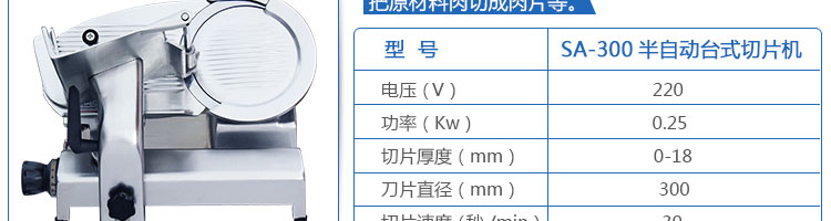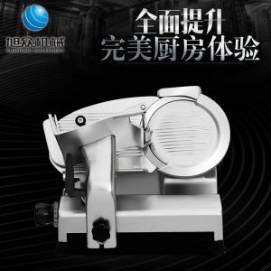 臺式半自動切片機(jī),適合切無骨肉類和其他類似榨菜帶有彈性的食物,把原材料肉切成肉片,并可自動成卷狀??汕信H馄?、羊肉片等