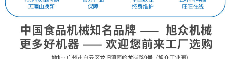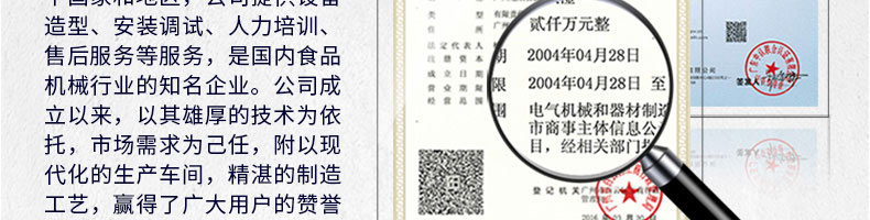 廣州旭眾食品機械有限公司是一家集科研開發(fā),生產(chǎn)設(shè)計,營銷服務(wù)為一體的現(xiàn)代化生產(chǎn)企業(yè)?,F(xiàn)代化生產(chǎn)車間,精湛制造技術(shù),所產(chǎn)機械歷經(jīng)市場重重考驗,不斷贏得海內(nèi)外客戶的贊譽。