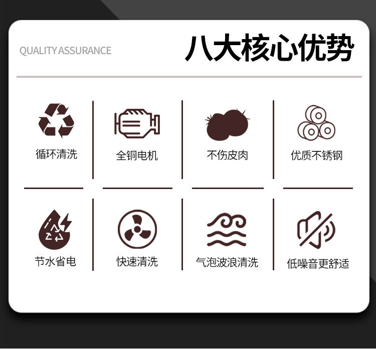全自動果蔬氣泡清洗機,堅固耐用,整機采用質不誘鋼。由防銹外層、鋼層底、強硬鋼外層組成,耐用不易生銹。澎湃大動力源于好,搭載變頻電機,強勁動力穩(wěn)定輸出噪音低,好的動力源于好“芯”