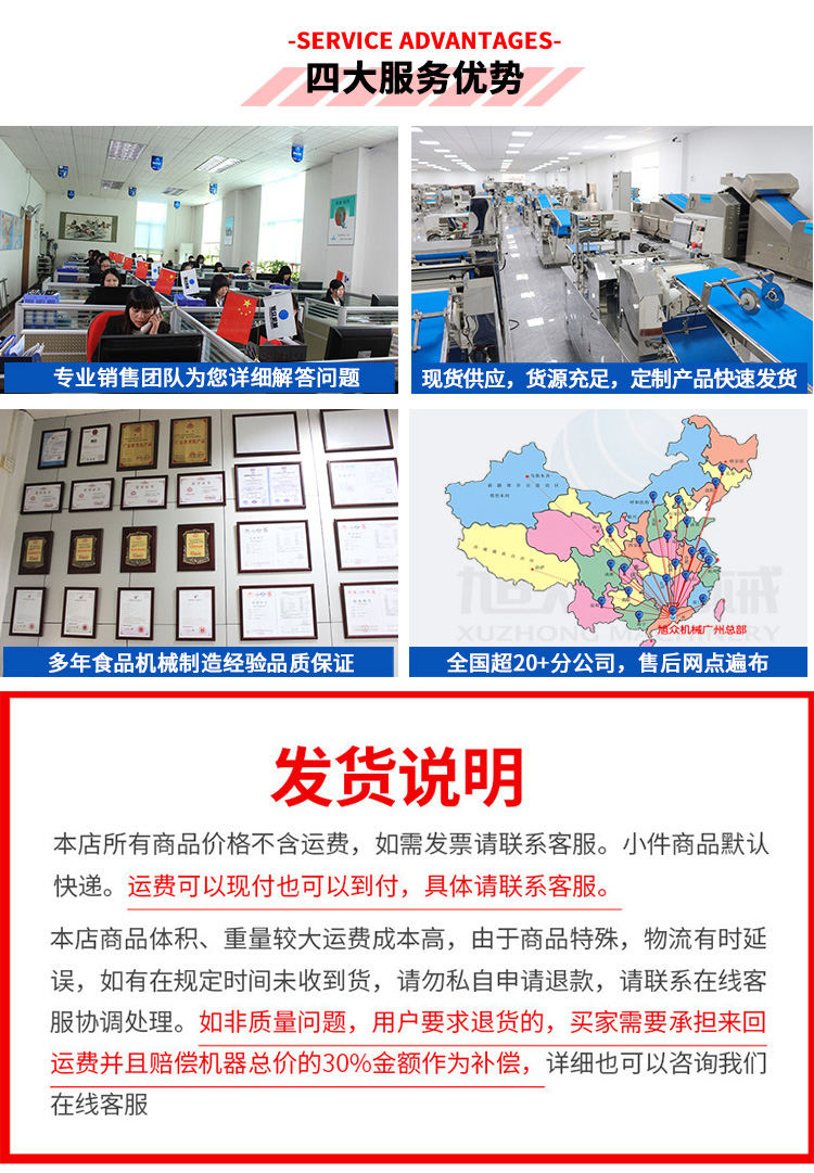 廣州旭眾食品機械有限公司是一家集科研開發(fā),生產設計,營銷服務為一體的現(xiàn)代化生產企業(yè)?,F(xiàn)代化生產車間,精湛制造技術,所產機械歷經市場重重考驗,不斷贏得海內外客戶的贊譽。