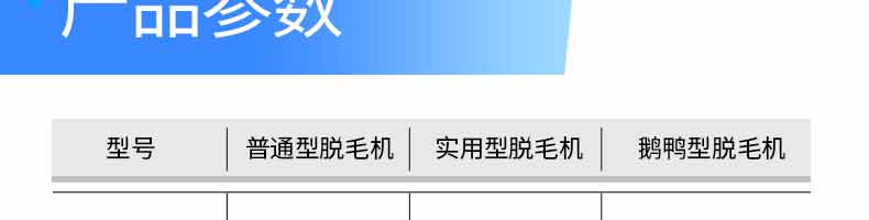 名稱鵝鴨型脫毛機 電源 功率 產(chǎn)量 尺寸 重量 規(guī)格 其他