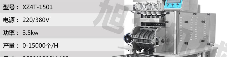 名稱XZ4T-1501多功能搓圓擺盤機/湯圓機 電源220/380V 功率3.5kw 產(chǎn)量0-15000個/小時 尺寸外形尺寸2600*1200*1400mm 重量800kg 規(guī)格20-30mm(直徑) 其他