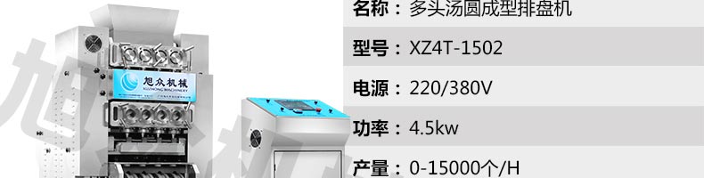 XZ4T-1501多功能搓圓擺盤機/湯圓機,本機只要將面團放入進料口,開機便可自動搓圓、成型的設(shè)備,一次性成型四次產(chǎn)品,制品不易變形,工作效率高,相當(dāng)于15-20個工人同時手工制作湯圓,并可自動排盤,真正的低投入、高收效、省錢省工。