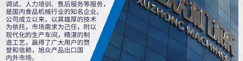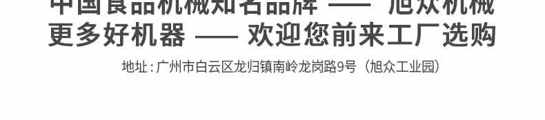 廣州旭眾食品機械有限公司是一家集科研開發(fā),生產(chǎn)設(shè)計,營銷服務(wù)為一體的現(xiàn)代化生產(chǎn)企業(yè)?,F(xiàn)代化生產(chǎn)車間,精湛制造技術(shù),所產(chǎn)機械歷經(jīng)市場重重考驗,不斷贏得海內(nèi)外客戶的贊譽。