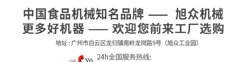 廣州旭眾食品機械有限公司是一家集科研開發(fā),生產(chǎn)設(shè)計,營銷服務(wù)為一體的現(xiàn)代化生產(chǎn)企業(yè)。現(xiàn)代化生產(chǎn)車間,精湛制造技術(shù),所產(chǎn)機械歷經(jīng)市場重重考驗,不斷贏得海內(nèi)外客戶的贊譽。