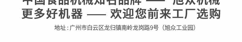 廣州旭眾食品機(jī)械有限公司是一家集科研開發(fā),生產(chǎn)設(shè)計(jì),營銷服務(wù)為一體的現(xiàn)代化生產(chǎn)企業(yè)?,F(xiàn)代化生產(chǎn)車間,精湛制造技術(shù),所產(chǎn)機(jī)械歷經(jīng)市場重重考驗(yàn),不斷贏得海內(nèi)外客戶的贊譽(yù)。