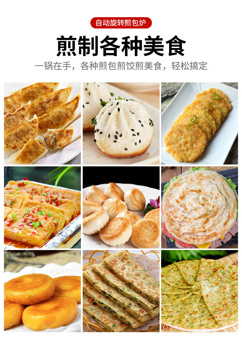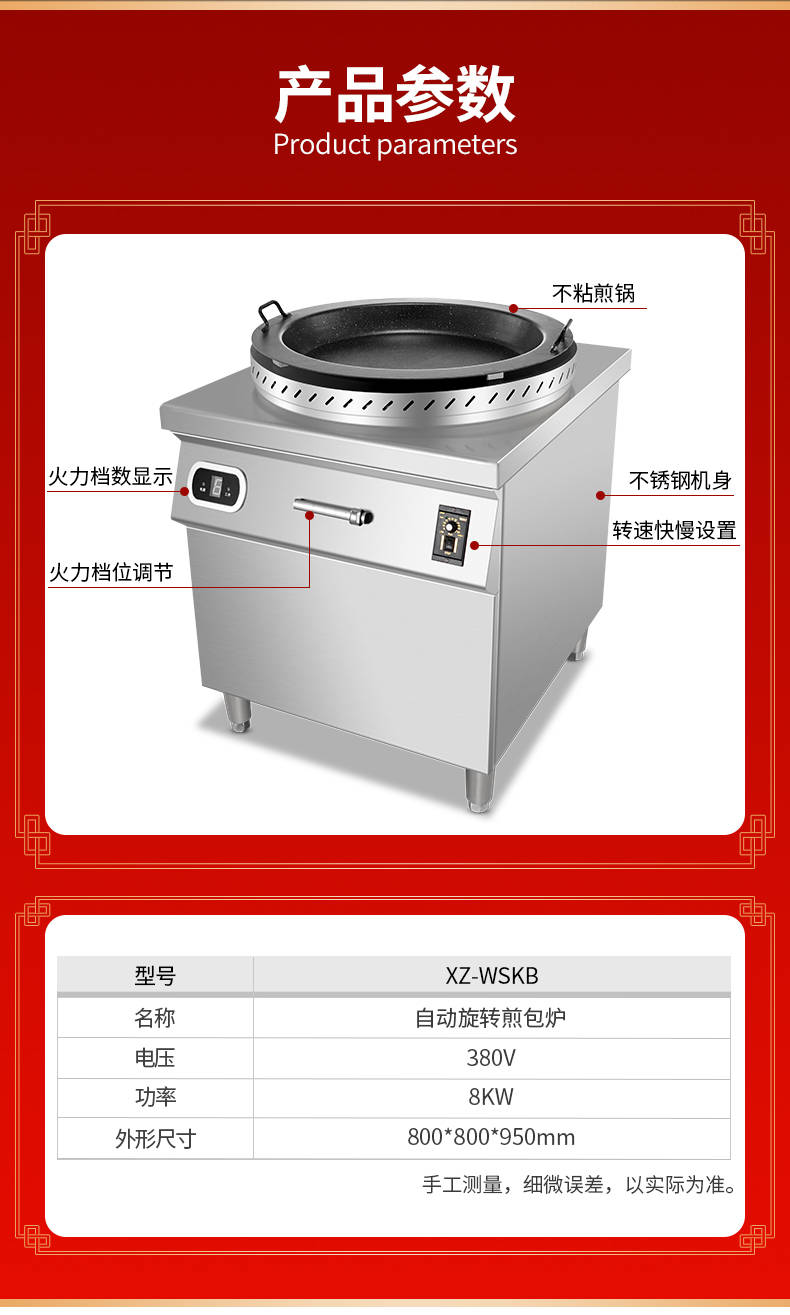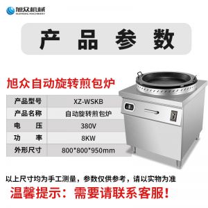 名稱XZ-WSKB自動旋轉煎包爐 電源380V 功率8KW 產量請咨詢銷售員 尺寸800*800*950mm 重量請咨詢銷售員 規(guī)格請咨詢銷售員 其他