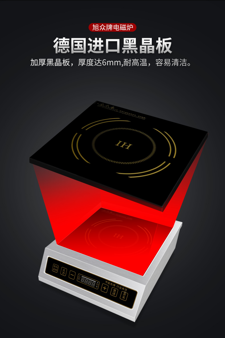 旭眾無明火電磁爐,電磁灶,通過電磁感應(yīng)工作的,所以不必?fù)?dān)心會(huì)像煤氣爐那樣因漏氣而引起爆炸或火災(zāi)等嚴(yán)重隱患。是 家用/商用理想選擇 !歡迎廣大餐飲行業(yè)精英來旭眾考察,選擇適合您的高效節(jié)能環(huán)保加熱設(shè)備。