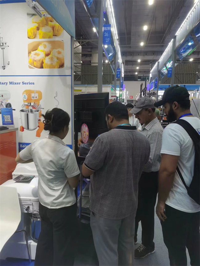 展臺上整齊地?cái)[放著各種食品加工機(jī)械,從冰激凌機(jī)到包子機(jī)、和面機(jī)、攪拌機(jī)等,每一樣產(chǎn)品都展示著公司的技術(shù)實(shí)力和創(chuàng)新能力。