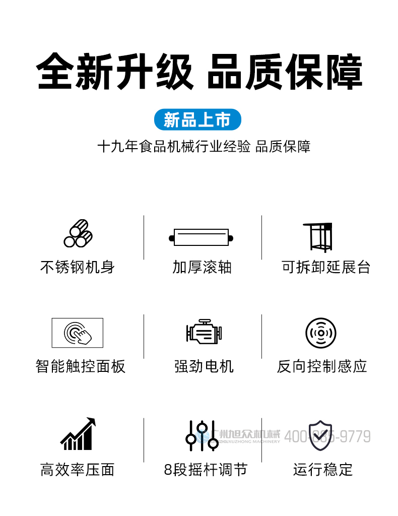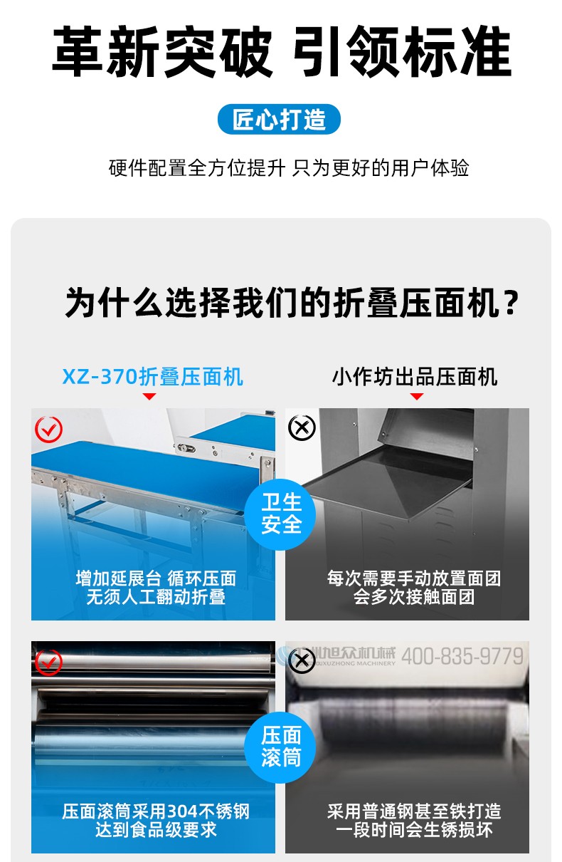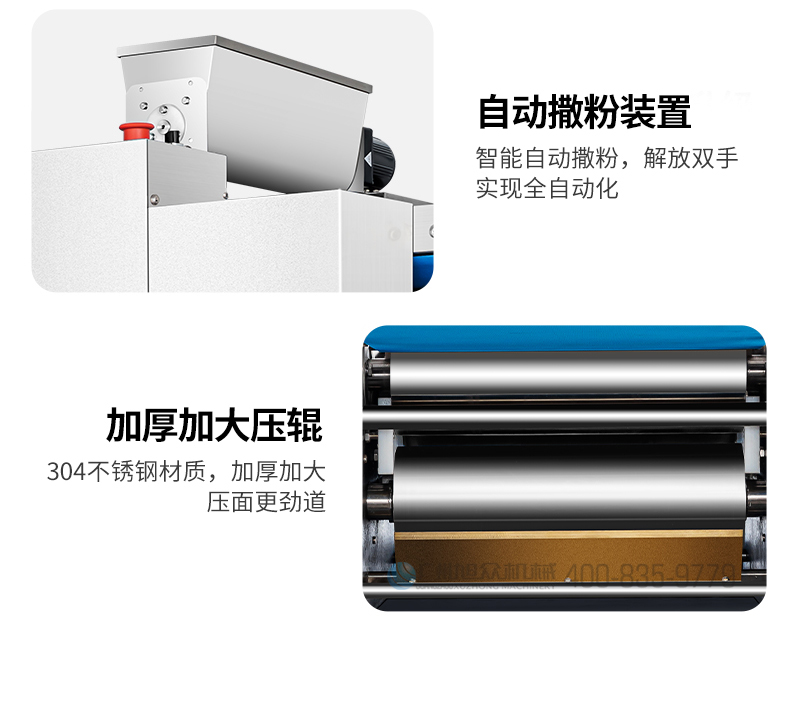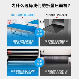 XZ-ZDYMJ370型自動折疊壓面機(jī),整機(jī)不銹鋼機(jī)身打造,真材實(shí)料,選用不銹鋼材質(zhì),打造經(jīng)久耐用、防腐蝕。匠心細(xì)節(jié),彰顯品質(zhì)貼心設(shè)計。一鍵設(shè)定壓面次數(shù),智能定時,只需設(shè)定好壓面次數(shù),就能全自動壓面出面。