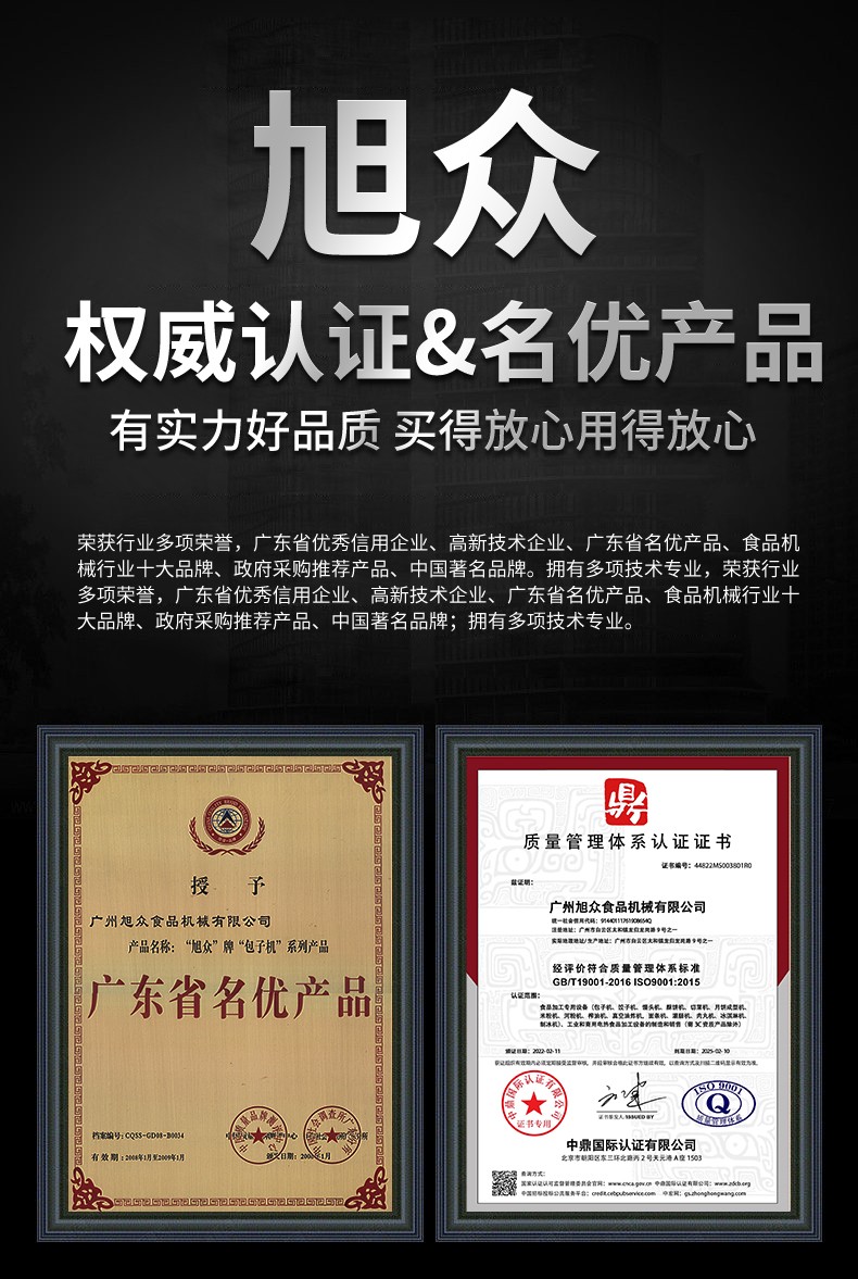 廣州旭眾食品機(jī)械有限公司是一家集科研開發(fā),生產(chǎn)設(shè)計,營銷服務(wù)為一體的現(xiàn)代化生產(chǎn)企業(yè)?,F(xiàn)代化生產(chǎn)車間,精湛制造技術(shù),所產(chǎn)機(jī)械歷經(jīng)市場重重考驗(yàn),不斷贏得海內(nèi)外客戶的贊譽(yù)。