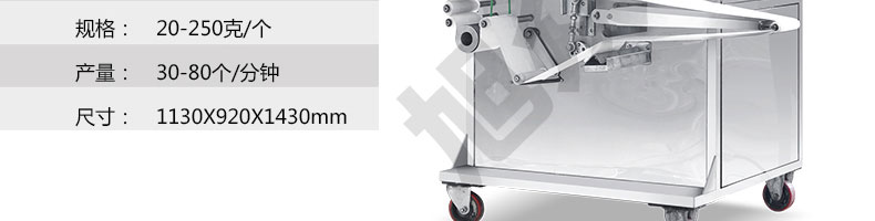 名稱SZ-64多功能自動(dòng)包餡機(jī) 電源220/380V 功率1.9kw 產(chǎn)量30-80個(gè)/分鐘 尺寸1130*920*1430mm 重量400kg 規(guī)格20-250克/個(gè) 其他皮餡比例2:8 5:5
