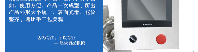 名稱SZ-65型多功能自動包餡機 電源220/380V 功率1.9kw 產(chǎn)量20-80個/分鐘 尺寸1130*920*1650mm 重量400kg 規(guī)格20-250克/個 其他皮餡比例2:8 5:5
