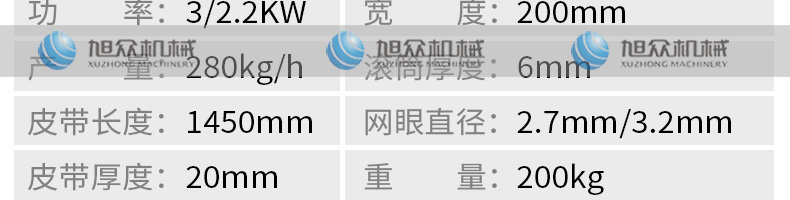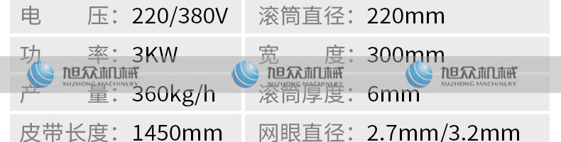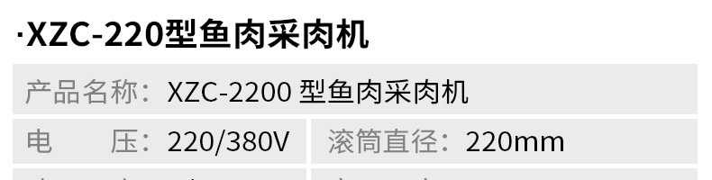 名稱XZC-160型魚肉采肉機 電源220/380V 功率2.2KW 產量聯(lián)系銷售員 尺寸830X680X870mm 重量140kg 規(guī)格聯(lián)系銷售員 其他