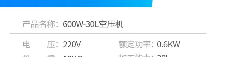 名稱空壓機 電源220v 功率0.6kw 產(chǎn)量30l 尺寸530*290*550mm 重量18kg 規(guī)格 其他