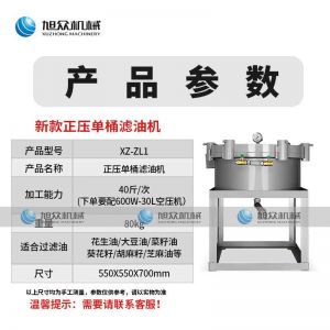 名稱正壓濾油機 電源 功率 產(chǎn)量40斤/次 尺寸550×550×700mm、1550×1100×700mm 重量80kg,180kg 規(guī)格 其他