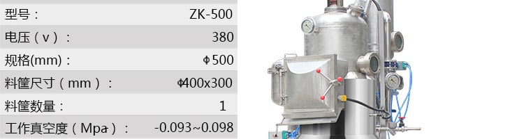 名稱zk-500真空油炸機 電源380V 功率5.5+2.2kw 產(chǎn)量5-15kg/次 尺寸1400*1400*2500mm 重量 規(guī)格料框數(shù)量1組;加熱方式:電/導熱油 其他